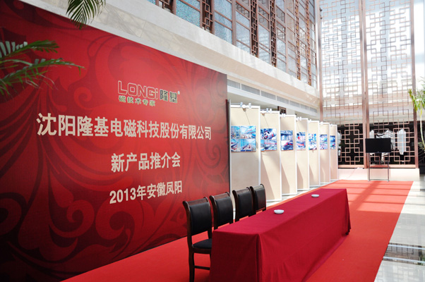 沈陽隆基電磁科技股份有限公司2013年新產(chǎn)品推介會經(jīng)過緊鑼密鼓的策劃與籌備,在當?shù)乜蛻舻闹С峙浜舷,?月27日在安徽鳳陽拉開帷幕。這是沈陽隆基鳳陽辦事處成立以來在安徽首次舉行的產(chǎn)品推介盛會,同時進行了“隆基服務行”客戶回訪活動。